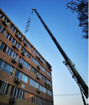 进场施工方面,因小区建成年限较长,物业无法提供建筑结构图纸,区住建委组织技术人员在设计前期进行反复勘探,请来房屋安全鉴定机构进行安全鉴定。确定安全后,与小区周边社会单位协调一致,租借大吨位吊车,停放到周边单位院子,隔墙把设备吊到现场施工。安装过程中克服种种困难,道路狭窄车辆进不去,施工现场的渣土都是人工搬运。
