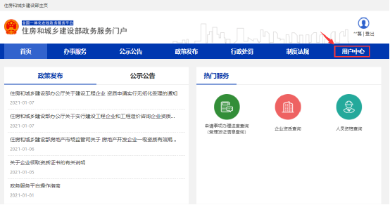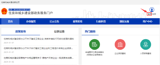 一、通过住房和城乡建设部政务服务门户