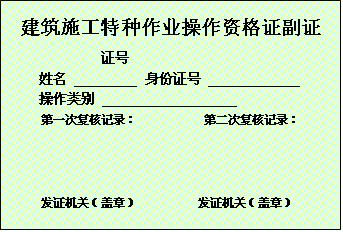 2、特种作业操作资格证书正本及副本均采用纸质,正本加盖钢印和发证机关章后塑封,尺寸为