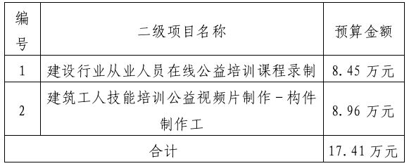 本项目预算总金额人民币17.41万元,二级项目及预算金额见下表: